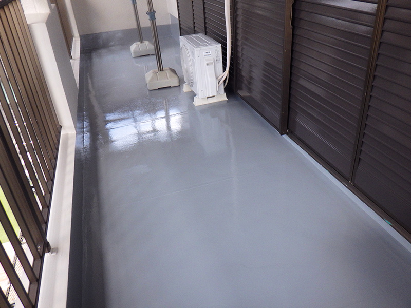 何気なく洗濯物を干しているベランダや屋上。ここは、 外壁や屋根とは異なり、人が歩くため直接的に防水部分を傷めることがあります。そのため、建物に大きな損失が及ぶ前に、早目の処置が必要です。写真のように、しっかりとした防水工事がなされていれば、建物の資産価値も向上しますし、何より安心です。